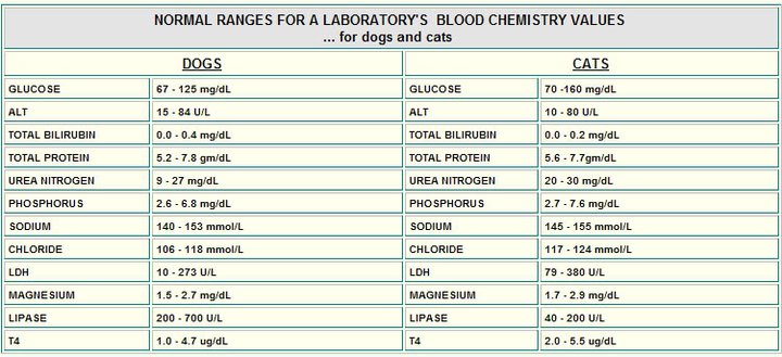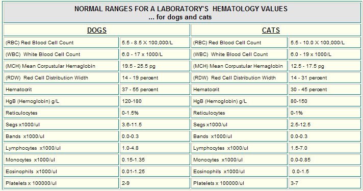 ตารางค่าปกติของการตรวจเช็คเลือด ในสุนัขและแมว