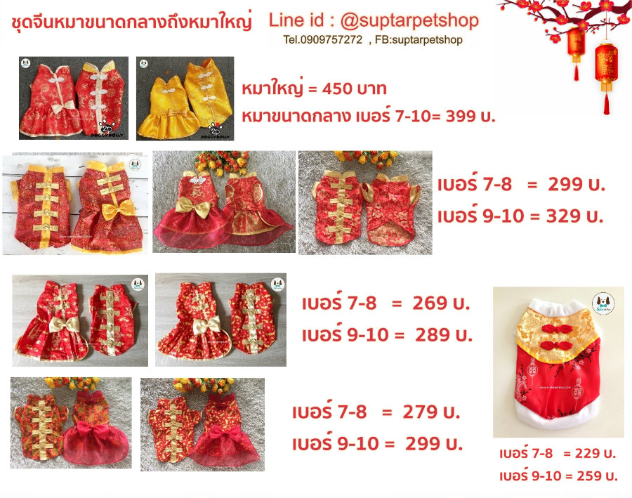 เสื้อจีนสำหรับสัตว์เลี้ยงขนาดใหญ่ เสื้อจีนหมาใหญ่ เสื้อจีนสุนัขพันธ์ใหญ่ เสื้อผ้าสุนัขตัวโต เสื้อหมาใหญ่ ไซส์ 7-16 (อก 56-106 cm.) |