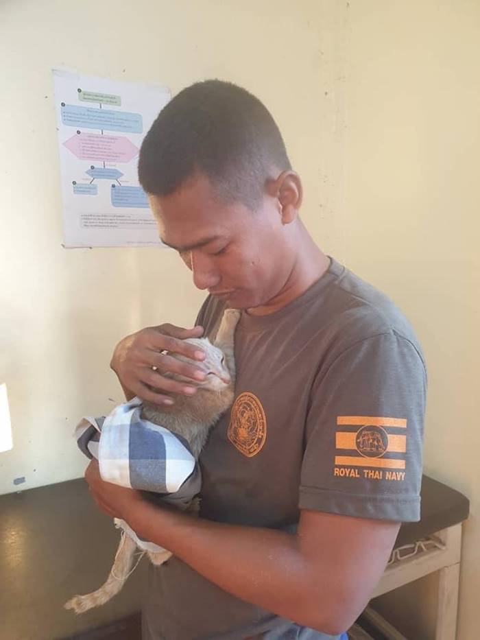 ภาพจาก เฟซบุ๊ก กองทัพเรือ Royal Thai Navy จากข่าว น้องทหารเรือได้เข้าไปช่วยเหลือน้องแมวจากเรือที่จมน้ำ