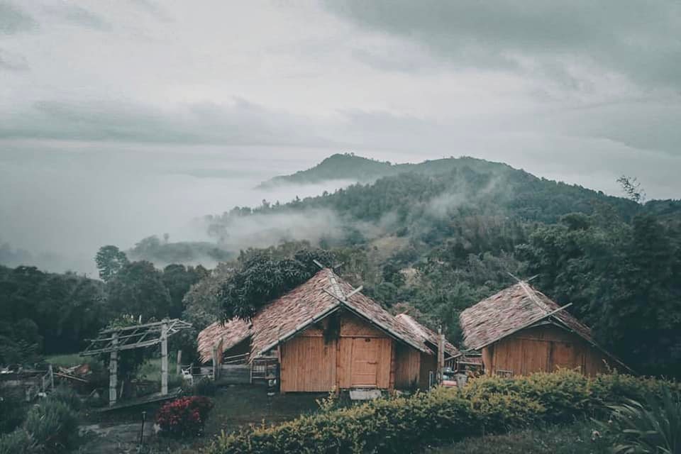 ที่พัก ที่นี้มีทั้งเรือนไม้ไผ่,เต้นท์ริมเขา ,เต้นท์กระโจม, และสามารถนำเต้นท์มากางเองได้
