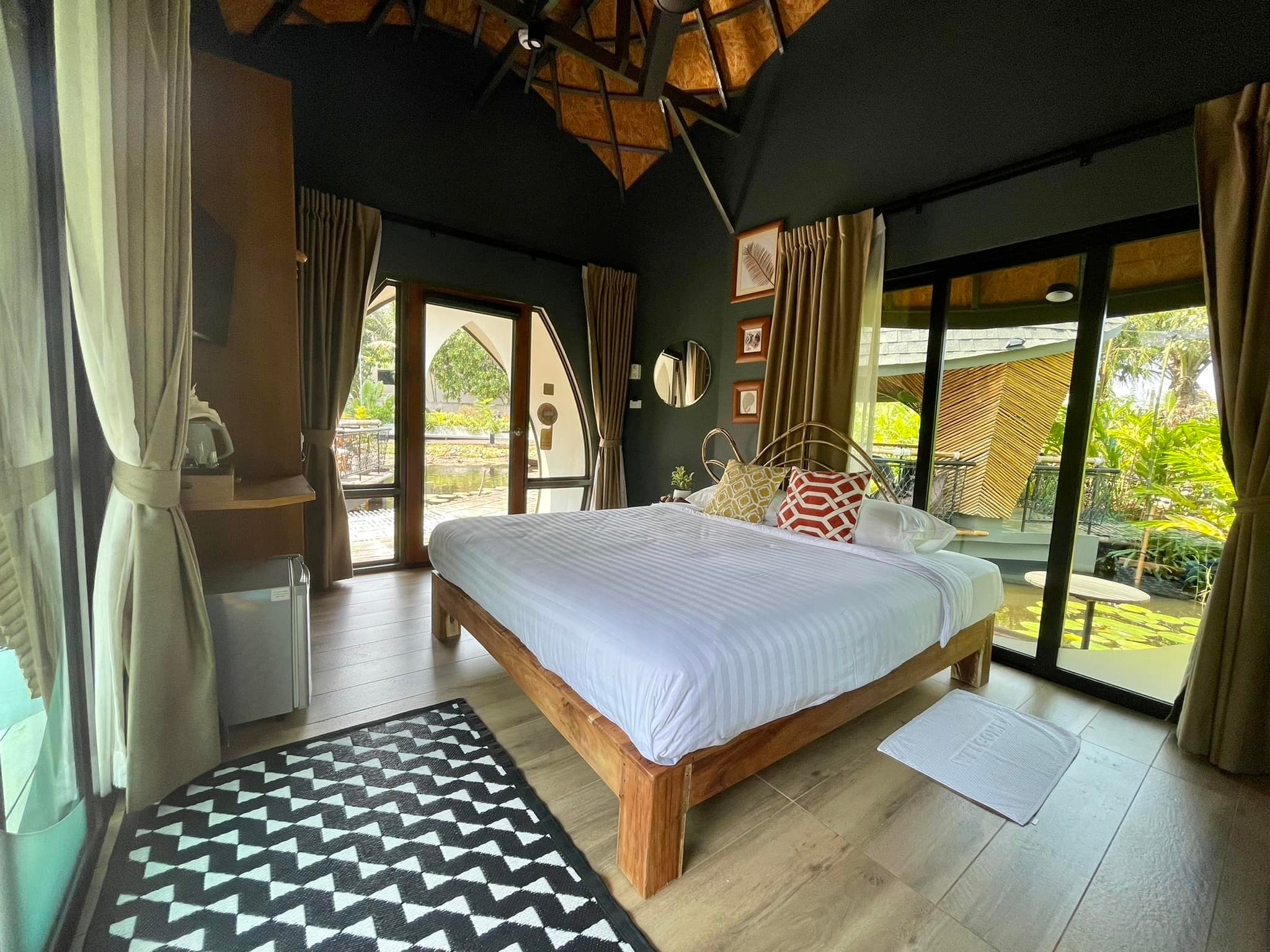 ห้องนอนเห็นวิวน้ำล้อมรอบ สวนตัว