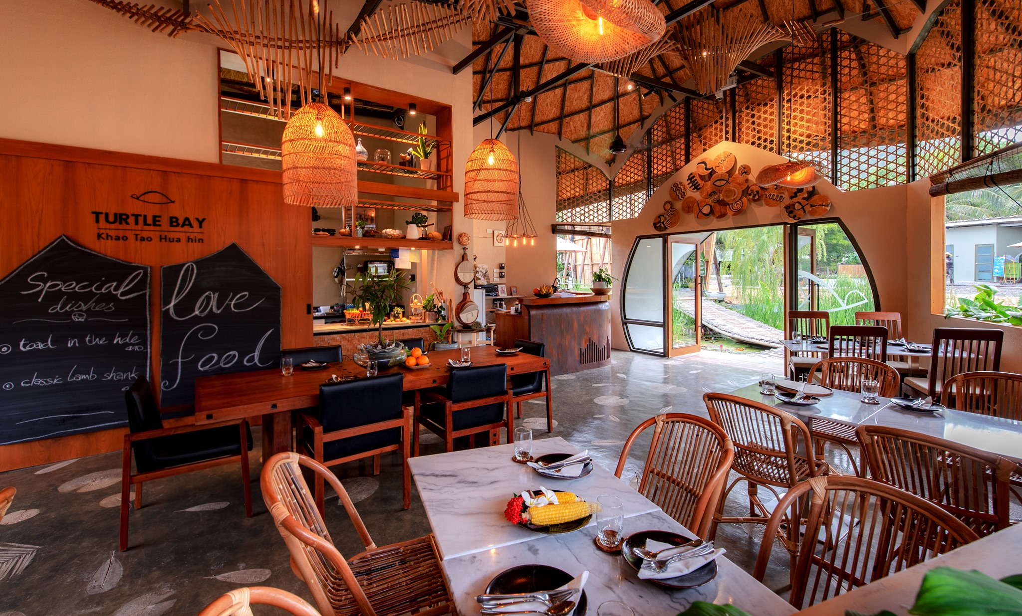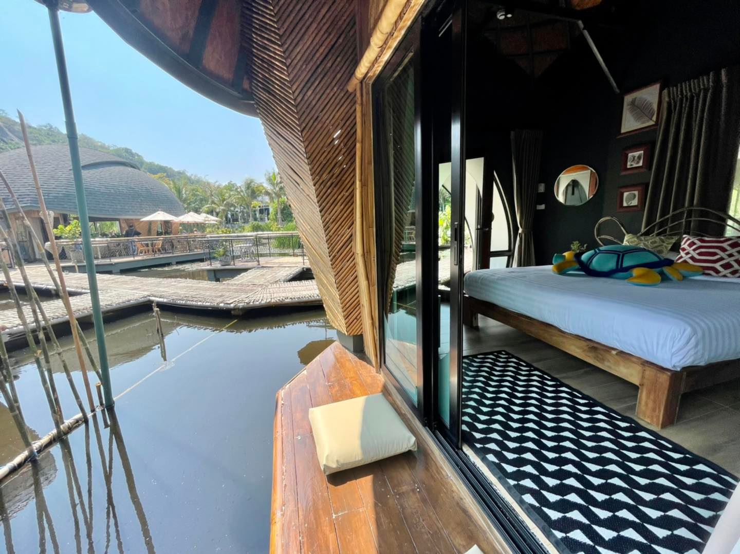 Turtle Bay Hua Hin ใกล้ทะเลหาดทรายน้อยหัวหิน รีสอร์ตหลังเต่าเปิดใหม่ใกล้ปราณบุรี ติดอ่างเก็บนำ้เขาเต่ามีเอกลักษณ์ เป็นที่พัก pet friendly hotel อย่างแท้จริงให้สัตว์เลี้ยงเข้าพักได้ทุกสายพันธ์ ที่โดดเด่นทั้งด้านอาหาร และดีไซด์ที่ไม่เหมือใคร อยู่กลางบึงบัวธรรมชาติ ที่โอบล้อมด้วยหุบเขาแรกและที่เดียวในหัวหิน คาเฟ่ turtle bay huahin ออกแบบสไตล์ eco luxu ตกแต่งสวยมาก จะมีหลังคารูปเหมือนกระดองเต่า มีที่พัก 4 หลัง ด้านหน้าเป็นคาเฟ่ บริเวณรอบ ๆ ที่พักเขารายล้อมไปด้วยธรรมชาติสุดชิลที่ให้ความเงียบสงบไม่วุ่นวายเหมาะสำหรับการพักผ่อนบวกกับที่พักที่เป็นหลัง ๆ คล้ายวิลล่าส่วนตัว ดีทั้งเรื่องอาหาร ที่พัก บรรยากาศ แถมอยู่ห่างจากชายหาดไม่ไกลนัก โอบล้อมไปด้วยภูเขา บรรยากาศเงียบสงบ