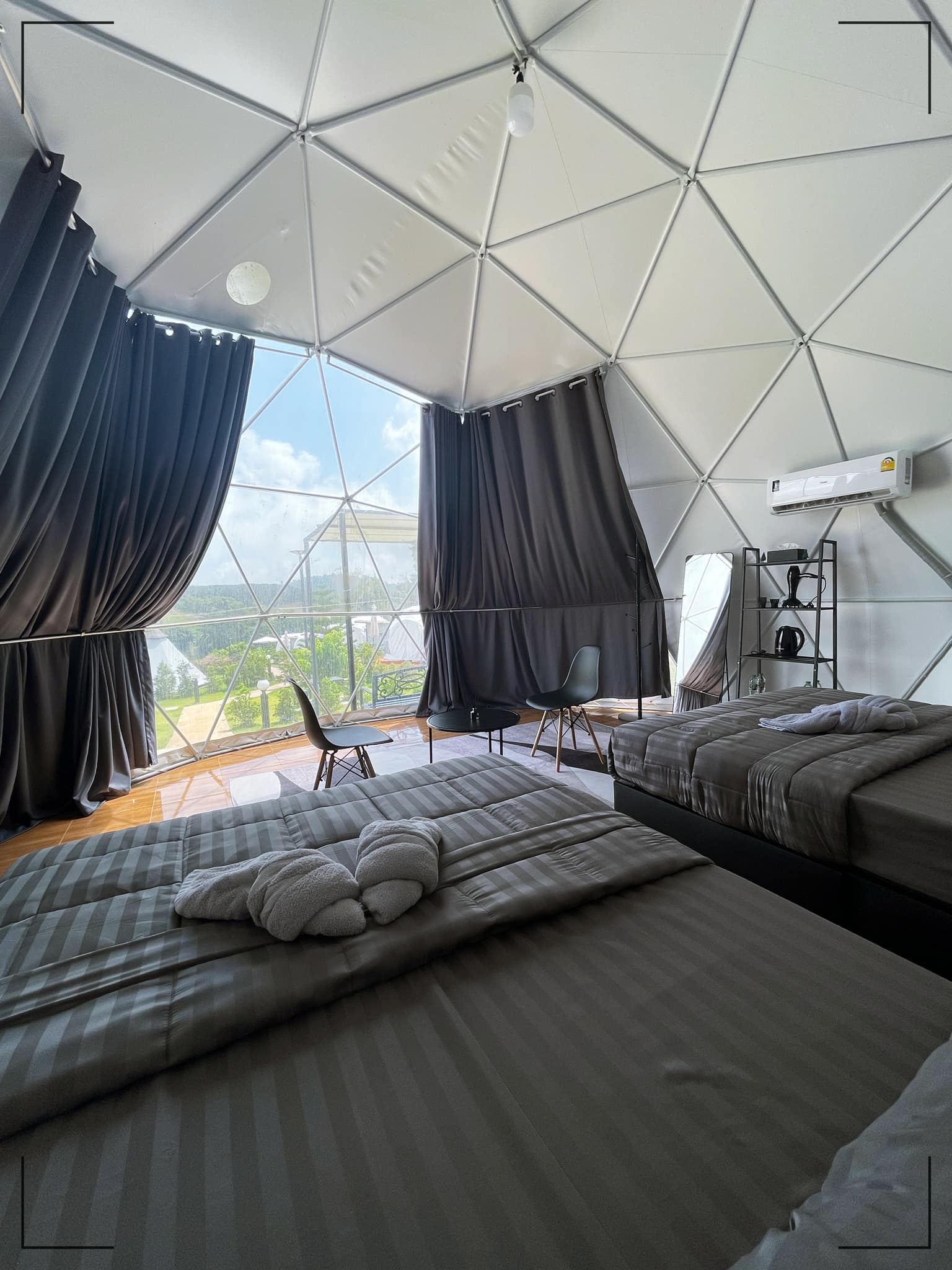 TRIPLE DOME พร้อมห้องน้ำส่วนตัว พักได้ 3 ท่าน มีแอร์ เหมาะกับลูกค้าแบบครอบครัว หรือแก๊งค์เพื่อนที่อยากอยู่ห้องเดียวกัน