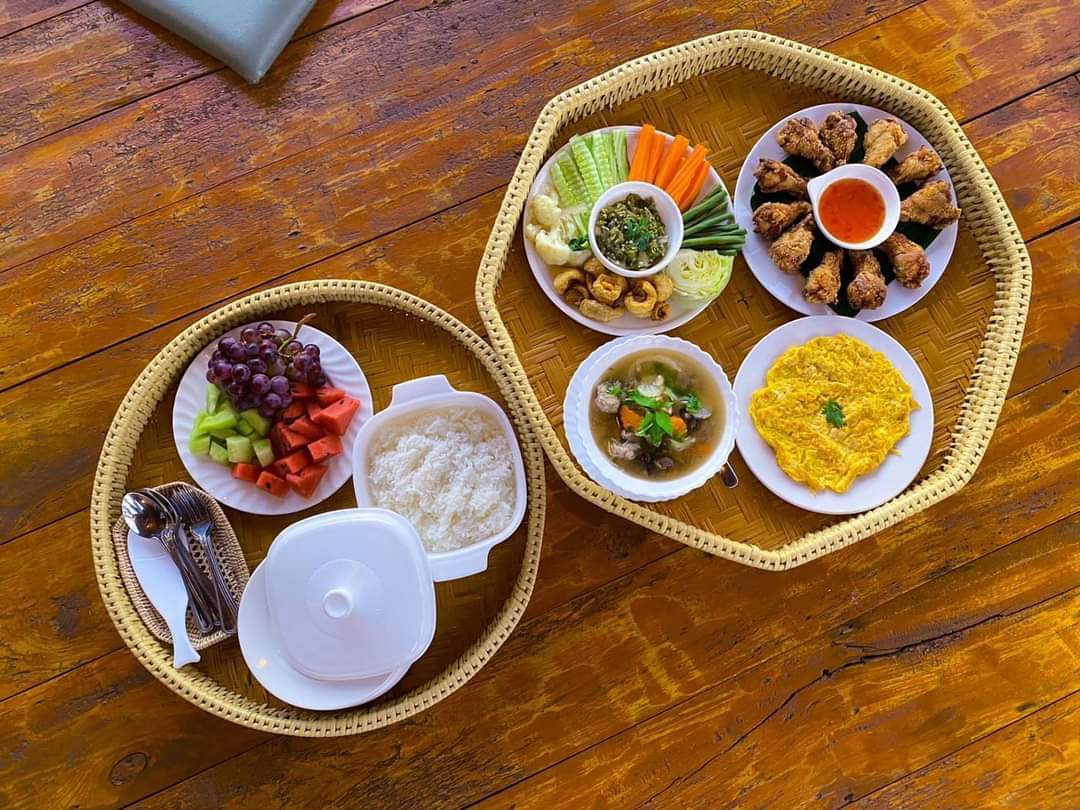 พร้อมอาหารเย็น (ชุดขันโตก) และอาหารเช้า (ข้าวต้ม+ไข่ลวก)