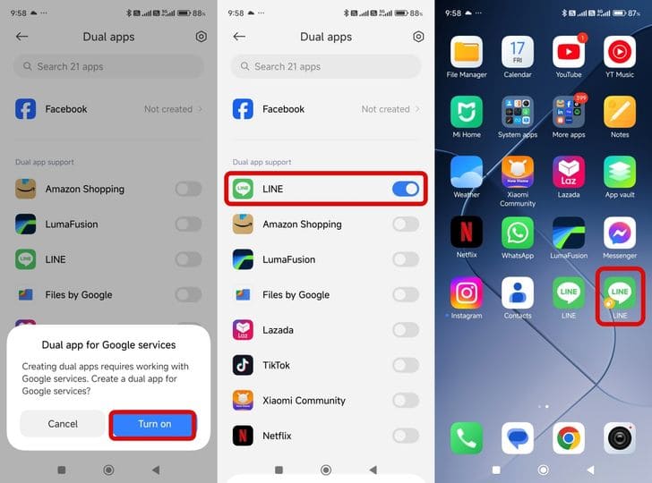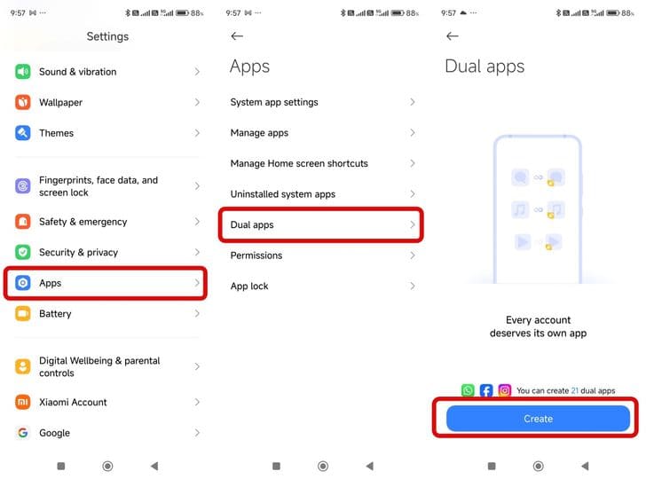 เลือกไปที่ แอปส์คู่ (Dual Apps)