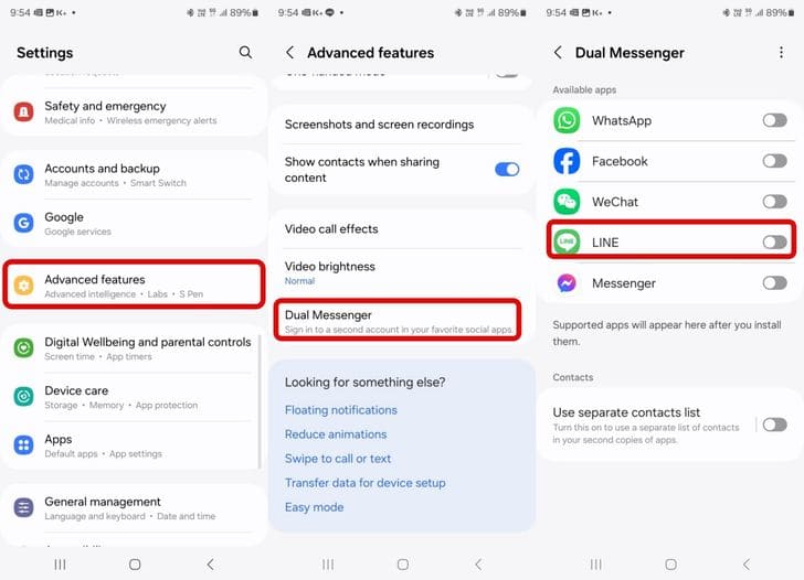 เลือกไปที่ Dual Messenger