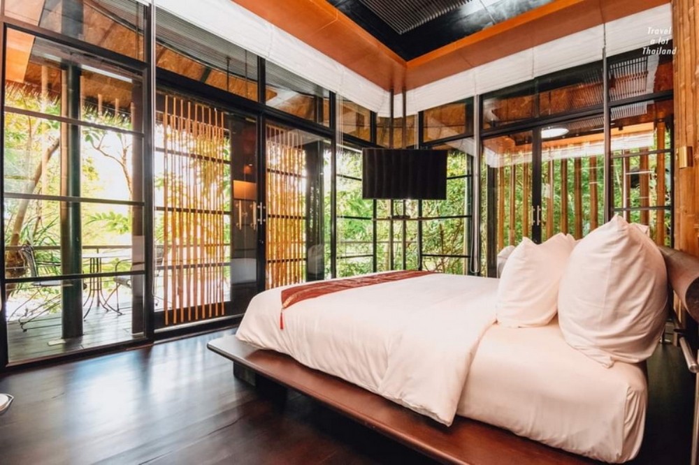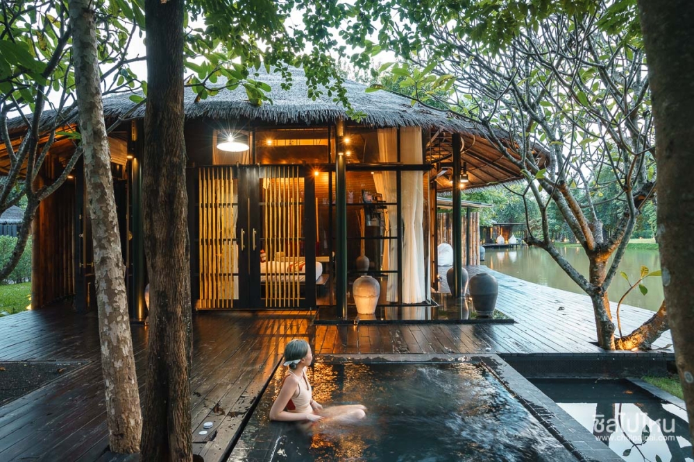 บูติครีสอร์ทสุดหรู สไตล์วิลล่าส่วนตัว นอนสบาย ใกล้ชิดธรรมชาติ  ริมแม่น้ำแคว ทุกห้องมีอ่างอาบน้ำขนาดใหญ่ สระว่ายน้ำส่วนกลางยาว 99 เมตร ติดริมน้ำแคว