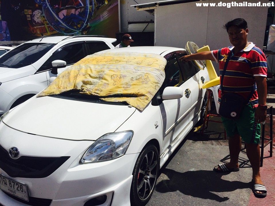 นอกจากนั้น ยังสังเกตว่าไม่มีน้ำหรืออาหารไว้ให้เลย จึงตัดสินใจของความช่วยเหลือจากเจ้าหน้าที่มูลนิธิฯ และเจ้าหน้าที่ตำรวจมาช่วยเหลือเอาออก หลังจากเอาสุนัขทั้ง 2 ตัวออกมาได้นำไปไว้ในตู้ยามที่ติดกับรถยนต์เก๋ง พร้อมเอาน้ำและอาหารให้สุนัขกินเพื่อรอเจ้าของกลับมาที่รถ ซึ่งคาดว่าเจ้าของรถยนต์ที่มีสุนัขอยู่นั้นข้ามไปเที่ยวยังเกาะล้าน แต่ไม่ทราบว่าจะกลับมาเมื่อไหร่