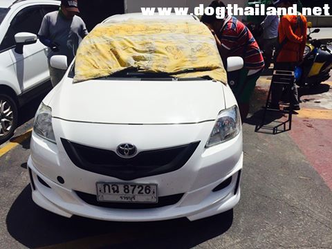 โดยมีเจ้าหน้าที่ตำรวจมาเป็นพยาน เพราะเกรงหากปล่อยไว้อาจทำให้สุนัข 2 ตัว เสียชีวิตเพราะอากาศร้อน ซึ่งรถดังกล่าวนั้นจอดไว้ในที่บริการจอดรถ 24 ชม. ซึ่งเป็นของเอกชนที่ตั้งอยู่บริเวณท่าเทียบเรือแหลมบาลีฮาย โดยจอดตั้งแต่ช่วงเช้าแต่ได้แง้มกระจกไว้ทั้ง 4 ประตู
