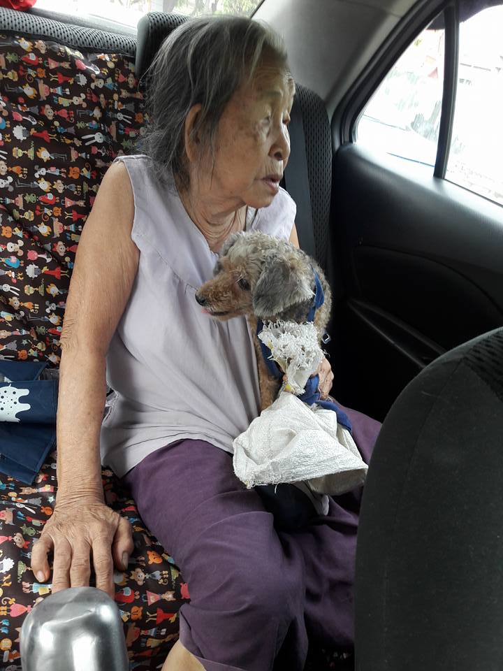 ยายอายุ 90 ปี พาสุนัขตัวโปรดพุดเดิ้ลวัยชรา 12 ปี ที่ป่วย นั่งรถเมล์ตากฝน พาหมาหาหมอ ไม่มีใครพามา ก็มาเอง |