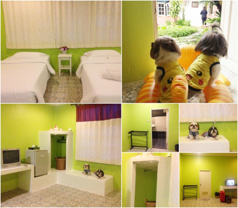 ราคาห้องพัก 1200 บาท ค่าน้องหมาตัวละ 150 บาท โบ้โนสองตัวก็ 300 บาทจ้า ไม่มีอาหารเช้า