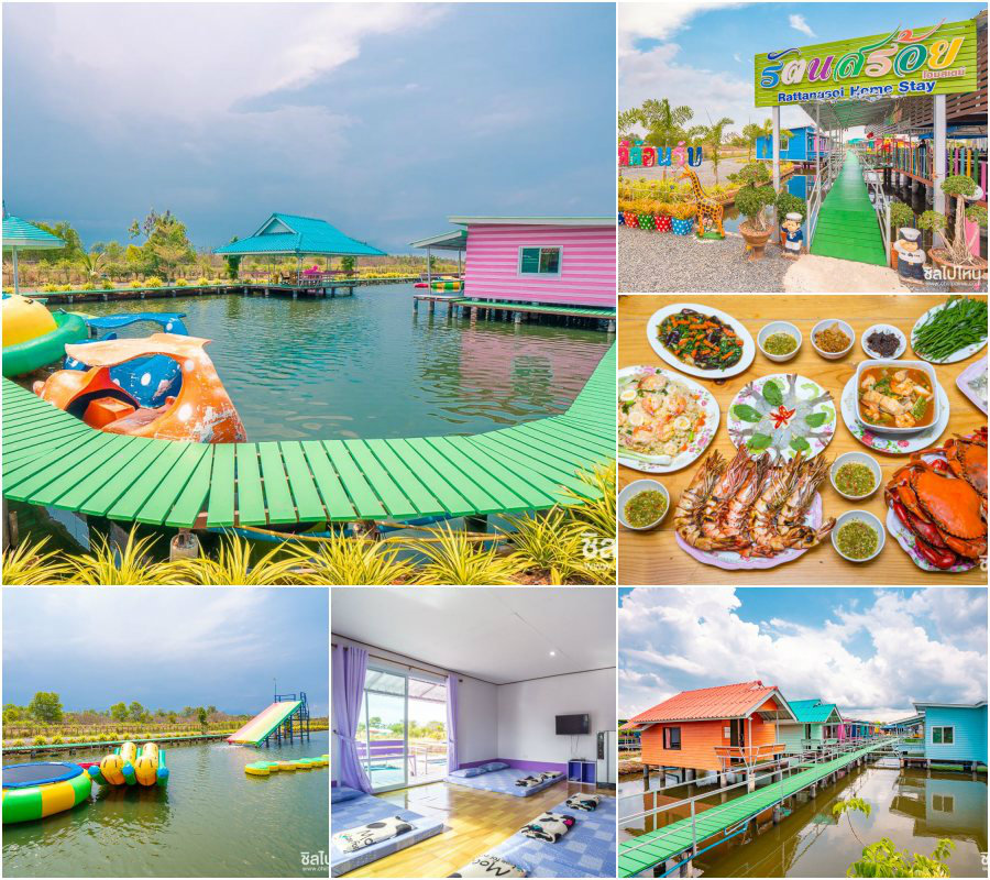 รัตนสร้อยโฮมสเตย์ อยู่ที่ อ.แหลมสิงห์ จ.จันทบุรี ที่พักกินปู ล่องแพ กิจกรรมต่างๆ สวนน้ำ สไลเดอร์ ล่องแพเปียก เล่นน้ำ ชมเหยี่ยวแดง ชมธรรมชาติ พายเรือแคนู ปั่นเรือเป็ด คาราโอเกะ พร้อมบรรยากาศสุดชิลล์ บุพเฟ่ห์อาหารทะเล กุ้ง หอย ปูปลา เติมไม่อั้น