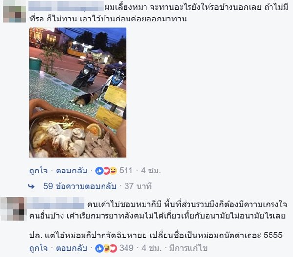 เห็นต่างเพียบ เพจดังจวกคนพาหมานั่งร้านข้าวข้างทางนั่งคางเกยโต๊ะ ข้างท้างก็นั่งไม่ได้เนี้ยนะ บอก..ถ้าอนามัยมากนัก ก็อย่าแหลกกก |