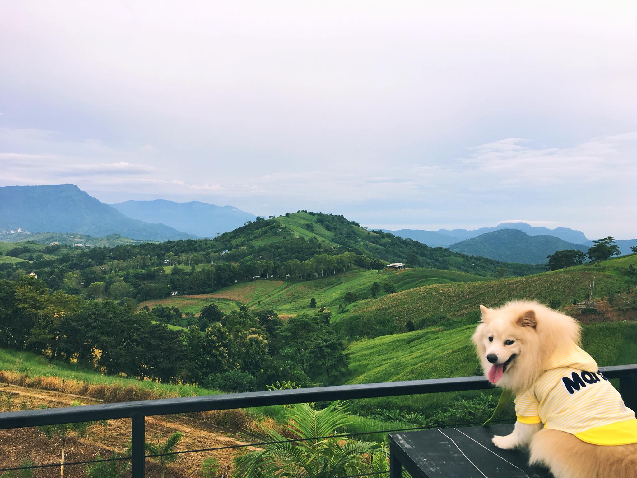 Pet Friendly Hotel in Thailands in Thailand วิวภูเขารอบตัว 360 องศาเลยครับ อากาศดีมาก อยู่ขึ้นมาห่างจากตัวชุมชนทางมาลูกรังนิดหน่อย ถ้ารถเก๋งต้องจอดไว้ตีนภูที่พักแล้วขึ้นโฟร์วีลของทางรีสอร์ทมาที่พักครับ จึงเหมาะแก่การตัดโลกภายนอกแล้วมานอนพักผ่อนอยู่กับธรรมชาติจริงๆ รีสอร์ทมีแค่ 5 ห้อง เลยค่อนข้างสงบ เป็นส่วนตัวดี คุณกอล์ฟเจ้าของและคุณลุงพ่อบ้านดูแลดีมากกกก และเป็นกันเองมากๆครับ(ที่สำคัญทุกคนรักหมา) อาหารสั่งทานที่รีสอร์ทได้เลยอร่อยราคาไม่แพง ห้องพักใหม่&สะอาด, amenitiesในห้องครบ, wi-fiแรง ประชุมงานข้ามประเทศได้ไม่สะดุดสำหรับผู้ที่หอบงานมาทำเช่นพ่อผม