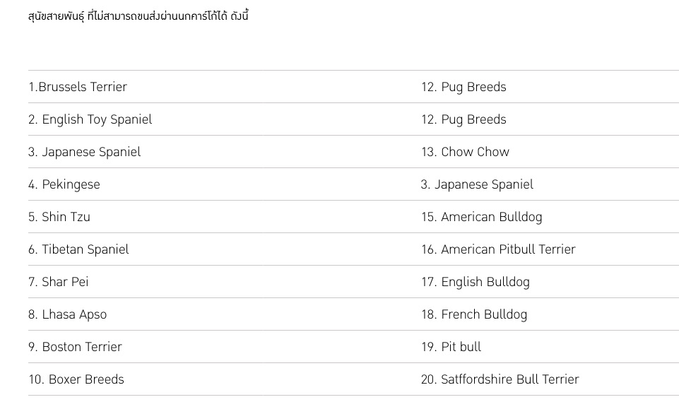 สุนัขสายพันธุ์ ที่ไม่สามารถขนส่งผ่านนกคาร์โก้ได้ ดังนี้