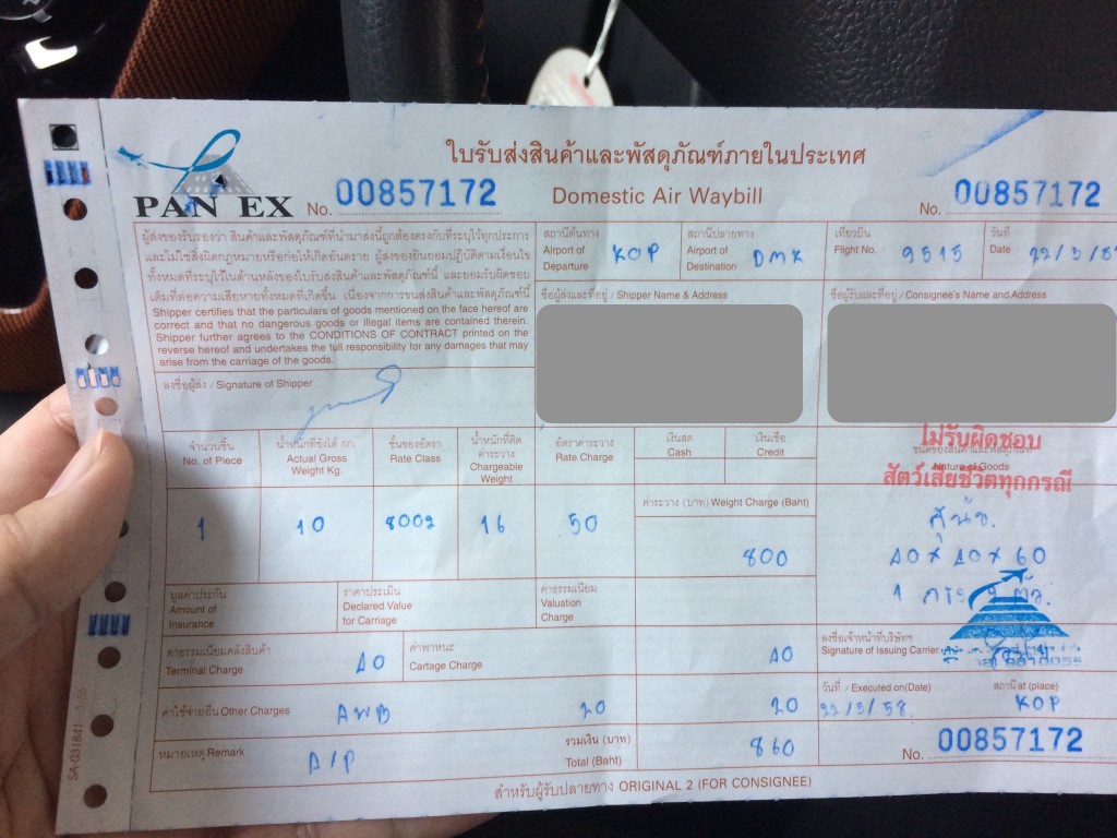 TIP : เพื่อนผมได้แจ้งเลขบัตรประชาชนและชื่อของผมไว้ตอนส่งของ ดังนั้นอย่าลืมเอาบัตรไปด้วยนะเพราะทางสายการบ้นจะเชคตอนเราไปรับกรงครับ ดังภาพเลย