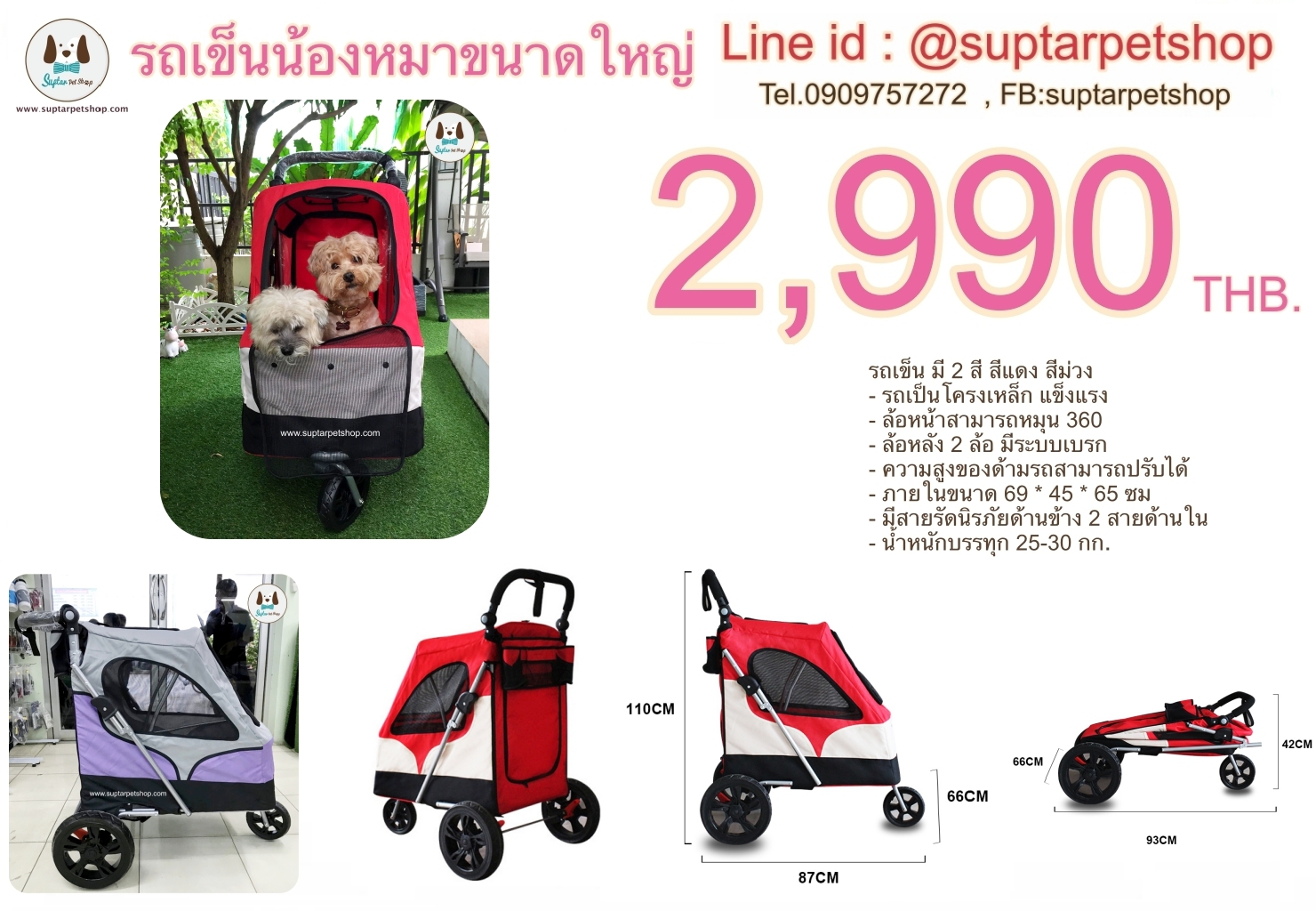 รถเข็นสุนัขและสัตว์เลี้ยงขนาดใหญ่ ล้อใหญ่ รับน้ำหนักได้ถึง 30 โล ราคา 2990 เท่านั้น !! |