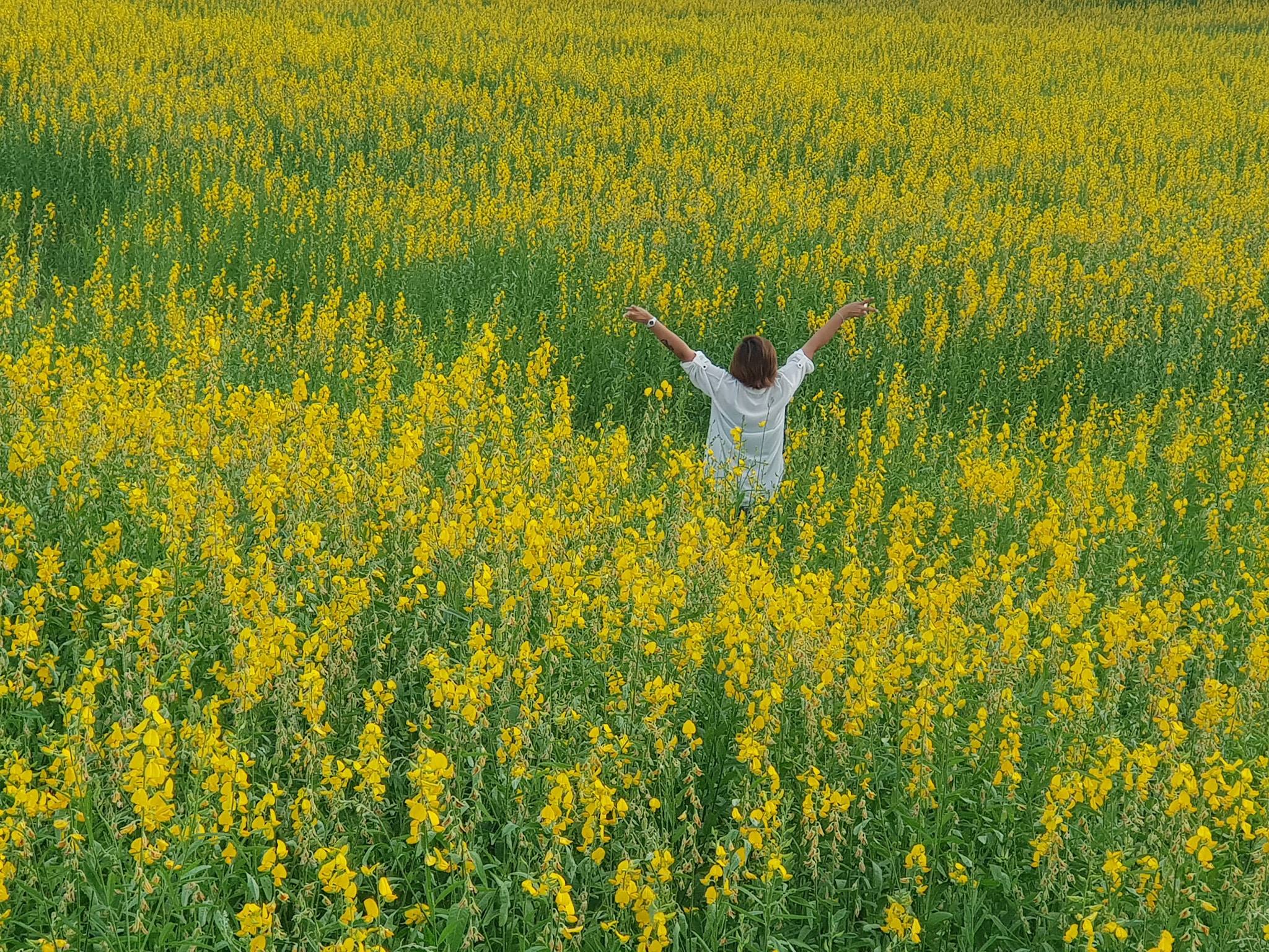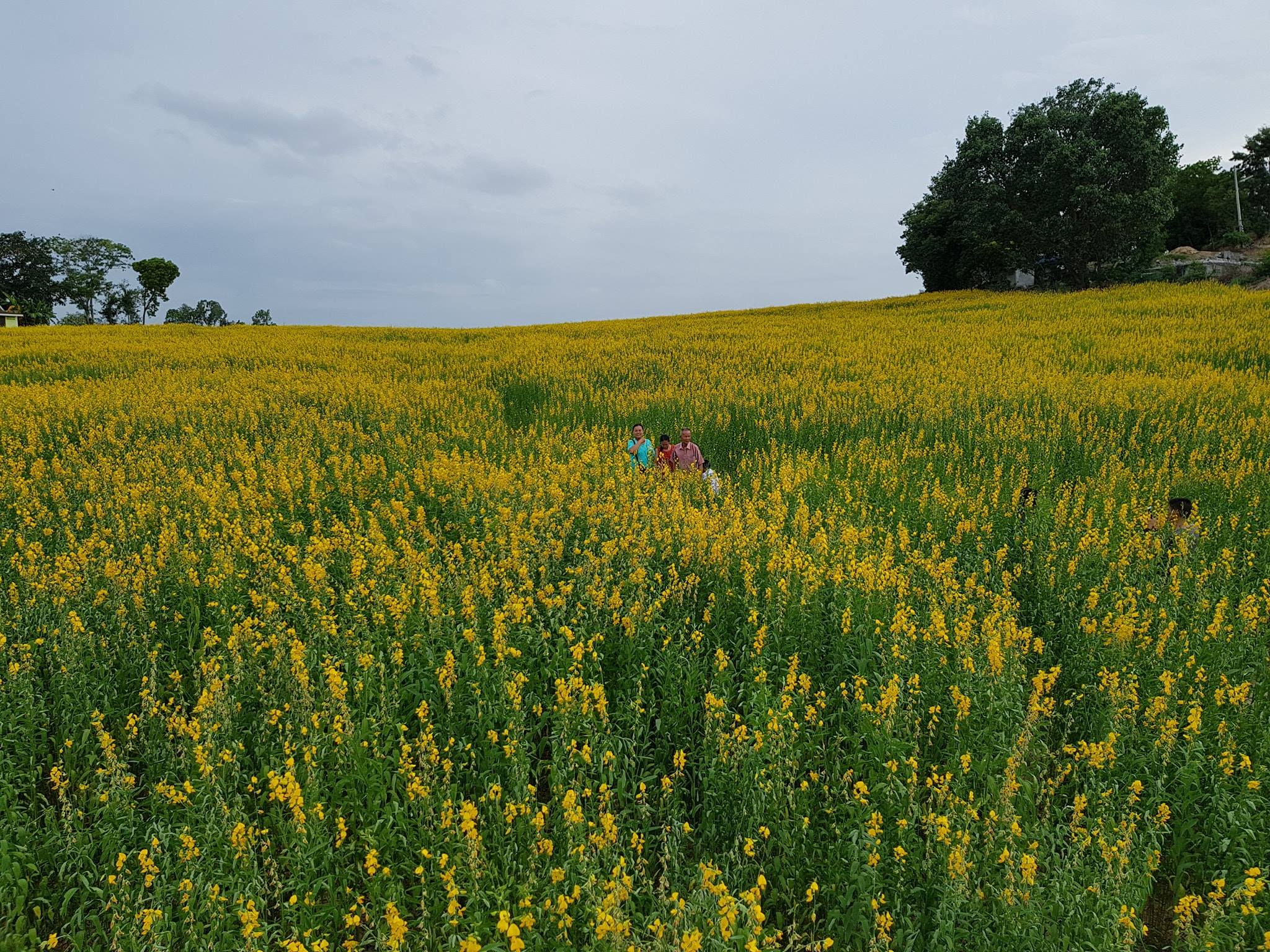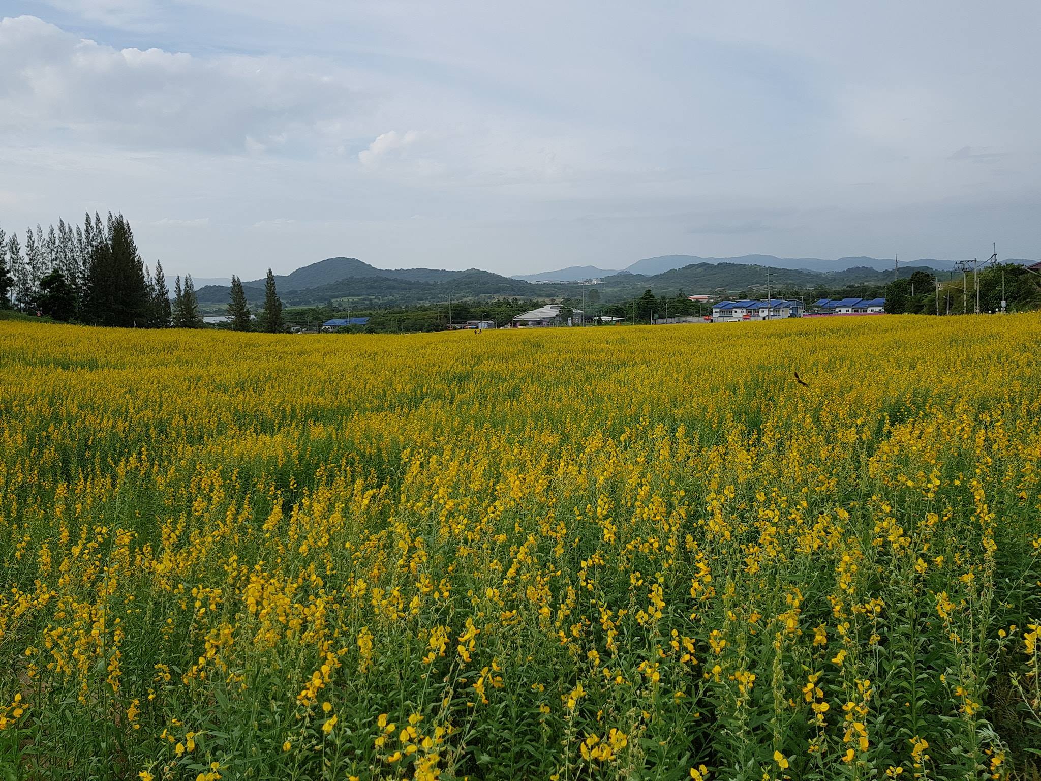 "ทุ่งปอเทือง" จ.ชลบุรี บานเหลืองอร่ามเต็มทุ่ง เข้าชมฟรี! พาหมาเที่ยว ชลบุรี ถ่ายภาพดอกปอเทืองกัน |