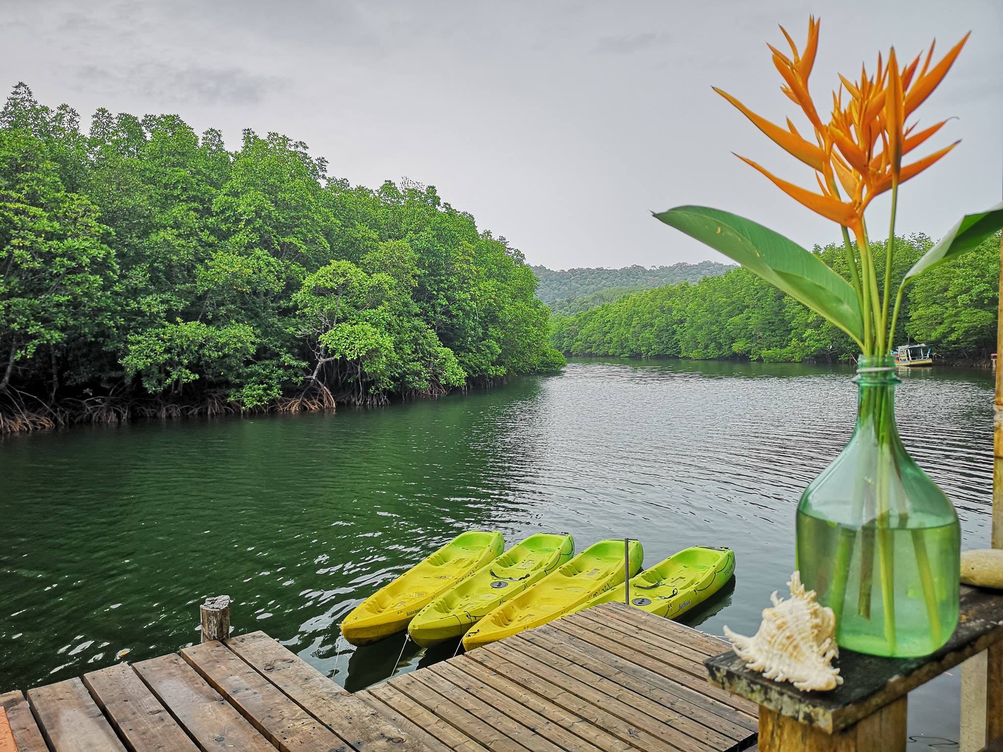 Mangrove bungalow 39/1 Baan klong chao,kohkood,trat,Thailand Mangrove Bungalow & Restaurant KohKood. ที่พักเกาะกูด ที่พักร่มรื่นริมคลองเจ้า เกาะกูด ดื่มด่ำกับธรรมชาติ หาดคลองเจ้า ทรายขาว ทะเลสวย สนุกสนานกับการดำน้ำ พายเรือ ใจดีให้น้องหมาเข้าพักได้ด้วย ที่พักติด "คลองเจ้า" เกาะกูด จ.ตราด นั่งเล่น เย็นใจ หรือไปพายเรือคายักเที่ยวหาดคลองเจ้า ฟรีอาหารเช้า, เครื่องปรับอากาศ, อินเตอร์เน็ต, เครื่องทำน้ำอุ่น, กาแฟ, ไดร์เป่าผม, ทีวี, ที่จอดรถ