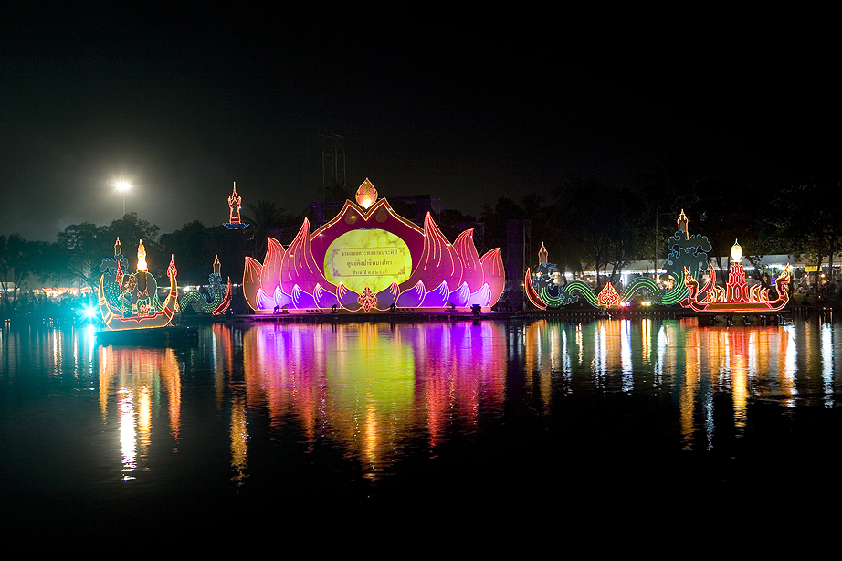 - การปล่อยเรือไฟล่องในสายน้ำ จำนวน 12 ลำ