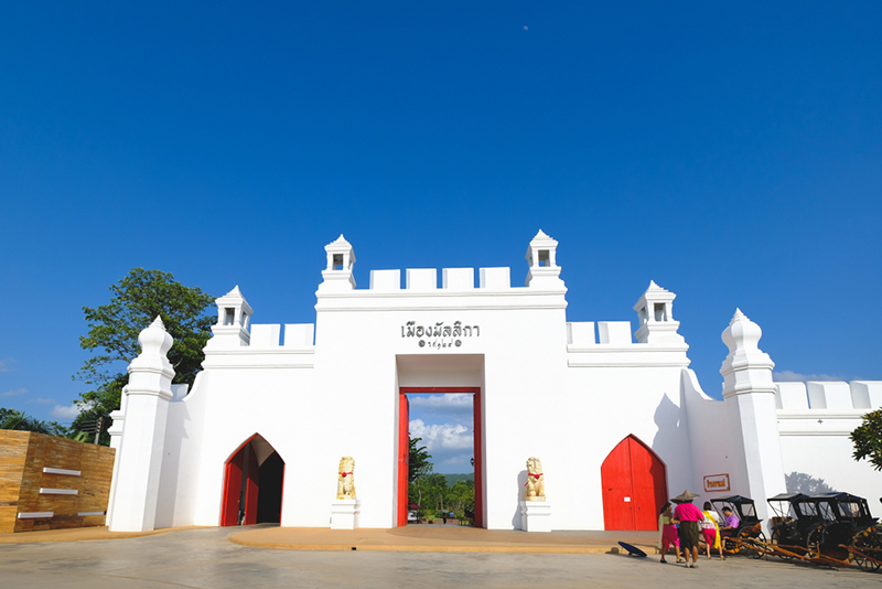 เมืองย้อนยุคที่แสดงให้เห็นวิถีชีวิตของชาวสยามบริเวณลุ่มแม่น้ำเจ้าพระยา ในสมัยพระบาทสมเด็จพระจุลจอมเกล้าเจ้าอยู่หัว รัชกาลที่ 5 ซึ่งมีสถาปัตยกรรมที่สวยงาม ผสมผสานระหว่างแบบไทยและยุโรป พร้อมทั้งมีเรือนไทยโบราณจัดแสดงในหลายจุด และเดินเลือกซื้อสินค้ากันอย่างจุใจ ทั้งข้าวแช่, ก๋วยเตี๋ยวหมูโบราณ, ผัดไทย, ขนมจีนน้ำยา, ข้าวต้มมัด, ขนมเบื้องโบราณ, น้ำแข็งไสแบบไทย, ขนมฝอยทอง, ขนมทองหยิบ-ทองหยอด, ขนมถ้วย, ข้าวเกรียบปากหม้อ, สาคูไส้หมู เป็นต้น และความสนุกก็ยังอยู่ตรงที่การใช้เงินโบราณในการซื้อสินค้าต่าง ๆ ทำให้ได้ความรู้สึกของการเดินเที่ยวตลาดโบราณจริง ๆ