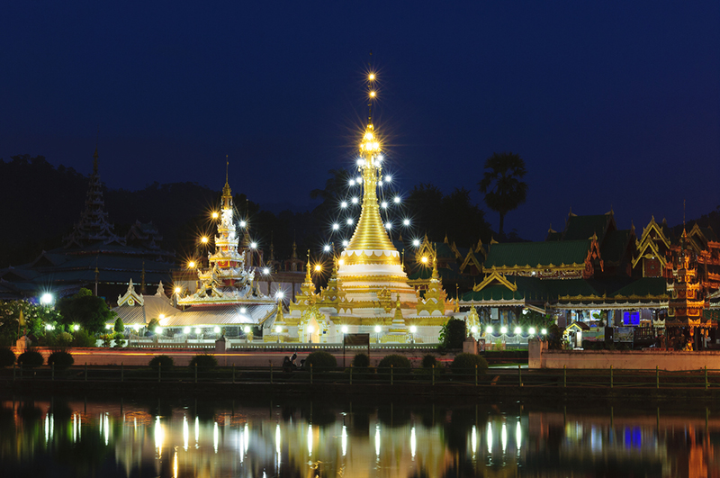 งานลอยกระทง 2561 ลอยกระทง ที่ไหนดี รวมที่เที่ยวลอยกระทง 2018 วัดที่เปรียบเสมือนวัดแฝด ด้วยเพราะตั้งอยู่ในกำแพงเดียวกัน ทั้งยังตั้งอยู่กลางเมืองแม่ฮ่องสอน โดดเด่นด้วยสถาปัตยกรรมแบบเมียนมา มีเจดีย์สวยงาม ตุ๊กตาแกะสลักด้วยไม้เป็นรูปคนและสัตว์เกี่ยวกับพระเวสสันดรชาดก ซึ่งเป็นฝีมือแกะสลักของช่างชาวพม่าให้ได้ชมกัน โดยพื้นที่ด้านหน้าของวัด บริเวณสวนสาธารณะหนองจองคำ ยังเอื้อให้ใช้เป็นสถานที่ประกอบพิธีตามประเพณีต่าง ๆ ในรอบปีโดยทุกปีในช่วงเทศกาลลอยกระทง จะมีการประดับประดาไฟส่องสว่างสวยงามตระการตา