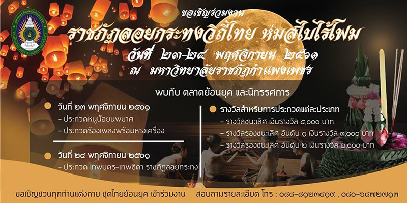 เฟซบุ๊ก : งานประเพณีลอยกระทง เผาเทียน เล่นไฟ จังหวัดสุโขทัย ประจำปี 2561
