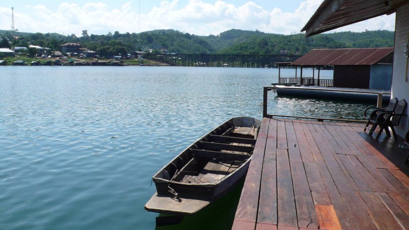 Sangkhla Buri, Kanchanaburi, Thailand 71240 อยู่ท่าน้ำหลังวัดศรีสุวรรณ ห่างสะพานมอญ 300 ม มองเห็นเลยค่ะ และห่างตลาด 1.2 กม [adsense]5879063568[/adsense]
