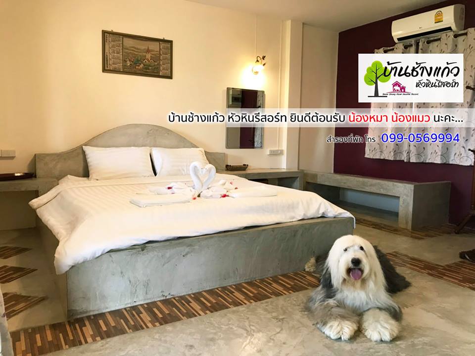 บ้านช้างแก้วหัวหินรีสอร์ท เป็นมากกว่าแค่ที่พักธรรมดา เพราะที่นี่... คุณก็พาน้องหมา น้องแมว มาพักที่เราได้ ห้องพักขนาด 25 m² พร้อมระเบียงด้านหน้าห้องและด้านข้าง ที่มีขนาดกว้างขวาง สะดวกสบาย เพื่อคุณและสัตว์เลี้ยงตัวโปรดได้นั่งพักผ่อนร่วมกัน ภายในห้องพักมีสิ่งอำนวยความสะดวกต่าง ๆ เช่น แอร์ ทีวี wifi เครื่องรับสัญญาณดาวเทียม เครื่องทำน้ำอุ่น ตู้เย็น ที่จอดรถกว้างขวาง สะดวกสบาย พร้อมสนามหญ้า ลู่จ๊อกกิ้ง ให้คุณและสัตว์เลี้ยงตัวโปรด ได้ใช้เวลาแห่งความสุขร่วมกันที่นี่ ในสิ่งอำนวยความสะดวกต่างๆ ที่เราจัดเตรียมไว้ให้ อยากให้ทุกท่านได้รับสิ่งที่ดีที่สุดเพื่อเด็กๆ