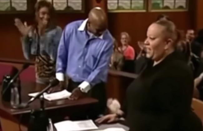 เธอให้ผู้ช่วยนำเจ้าหมาเข้ามาในห้องตัดสินคดี แล้วจะปล่อยตัวมันลงระหว่างชายผิวดำและหญิงร่างท้วม ถ้ามันวิ่งเข้าไปหาใครก่อนก็ถือว่าคนนั้นเป็นเจ้าของของมันไป