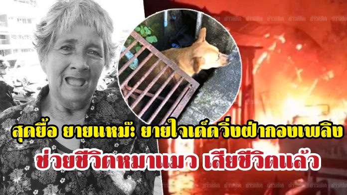 สุดยื้อ ยายแหม๊ะ ยายใจเด็ดวิ่งฝ่ากองเพลิง ช่วยชีวิตหมาแมวที่เลี้ยงไว้ เสียชีวิตแล้ว |