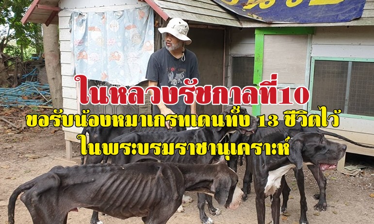 พระบาทสมเด็จพระเจ้าอยู่หัวรัชกาลที่10 ขอรับน้องหมาเกรทเดนทั้ง13ชีวิตไว้ในพระบรมราชานุเคราะห์ หลังเจ้าของขายไม่ออก ปล่อยให้อดตายแล้ว