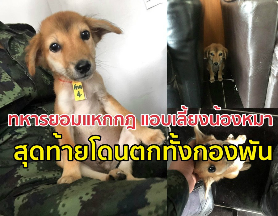 ทหารยอมแหกกฎ แอบเลี้ยงน้องหมาตั้งชื่อ "สายสี่" สุดท้ายโดนตกทั้งกองพัน ขนาดนายยังเอ็นดูอนุญาตให้เลี้ยงได้
