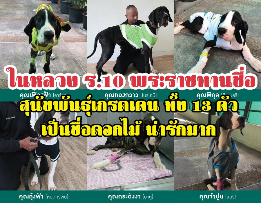 ในหลวง ร.10 พระราชทานชื่อสุนัขพันธุ์เกรตเดน ทั้ง 13 ตัว เป็นชื่อดอกไม้ น่ารัก กันมากๆ