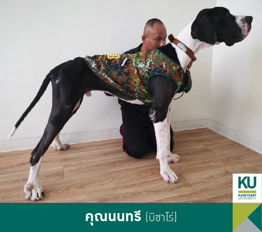 1. คุณนนทรี (บิซาโร่) เพศผู้ อายุ 2 ปี 3 เดือน น้ำหนัก 48.3 กก. มาร์กกิ้ง : หน้ากากขาว คอขาว