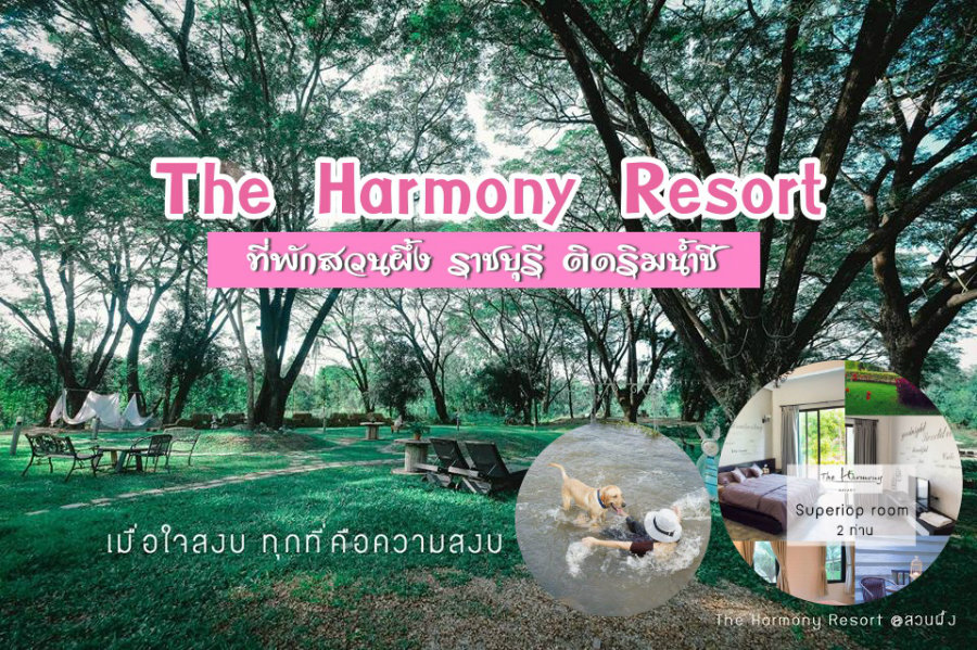 The Harmony Resort  เดอะ ฮาร์โมนี รีสอร์ท รีสอร์ทที่ผสานกลมกลืนกับธรรมชาติริมแม่น้ำภาชีสายน้ำหลักของอำเภอสวนผึ้ง ราชบุรี  ร่มรื่นด้วยต้นไม้ใหญ่ดั้งเดิม  บรรยากาศเงียบสงบ ห่างไกลจากความวุ่นวาย  พื้นที่ด้านหลังรีสอร์ทติดแม่น้ำภาชีซึ่งมีหาดหินแม่น้ำยาวสามารถเดินเล่นน้ำได้  ลานสนามหญ้ากว้าง ร่มรื่นด้วยต้นจามจุรีใหญ่  รีสอร์ทตั้งอยู่ห่างจากเวเนโตตลาดน้ำสวนผึ้ง 10 กิโลเมตร ห่างจากเดอะซีเนอรี่ฟาร์ม 12 กิโลเมตร ห่างจากน้ำพุร้อนบ่อผึ้ง 15 กิโลเมตร ห่างจากน้ำตกเขาจันทร์ 16 กิโลเมตร แถมใจดี ให้น้องหมาเข้าได้อีกด้วย พาหมาเที่ยวสวนผึ้ง ได้อย่างสบายใจได้เลย