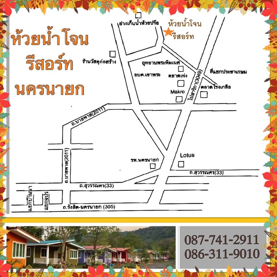 แผนที่ ห้วยน้ำโจนรีสอร์ท ที่พักนครนายก ราคาถูก