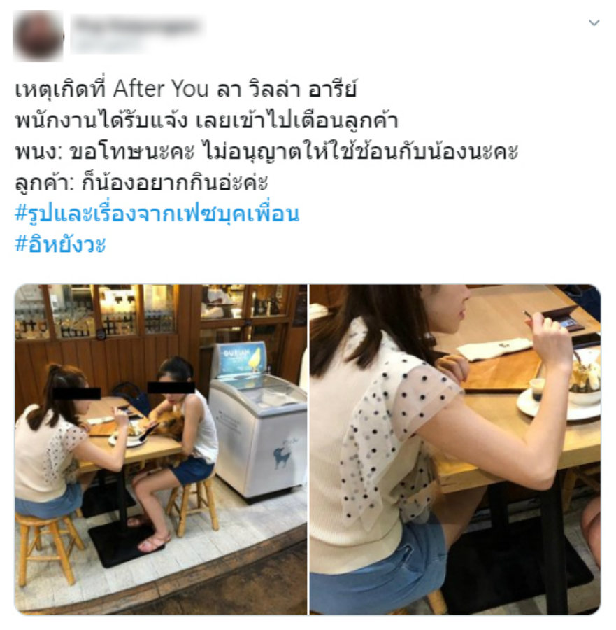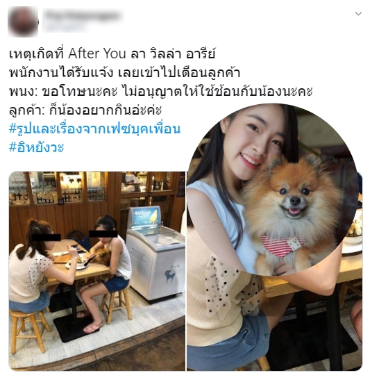 กลายเป็นประเด็นที่ถูกวิพากษ์วิจารณ์ย่างมาก กรณีมี 2 สาว พาสุนัขไปนั่งกินร้านขนมหวานชื่อดังแห่งหนึ่ง ย่านอารีย์ แต่มีการใช้ช้อนของทางร้านตักไอศกรีมป้อนสุนัขด้วย เมื่อพนักงานเข้าไปแจ้งก็กลับตอบว่า "ก็น้องอยากกิน"จนเกิดเป็นกระแสดราม่าและมองว่าไม่มีมารยาทนั้น