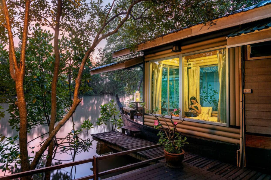 รตะธารารีสอร์ท หรือ บ้าน ปลาโลมา รีสอร์ท อำเภอบางปะกง ฉะเชิงเทรา ที่พักริมน้ำ ร่มรื่นใต้ร่มเงาของต้นแสมและลำพู ที่พักริมน้ำบางปะกง ไม่ต้องไปไกล ใกล้ๆ กรุงเทพ พักผ่อนสบายๆด้วยบรรยากาศร่มรื่นริมน้ำที่แสนสงบ ฟรีฟายเรือแคนู มีร้านอาหาร สุดอร่อย