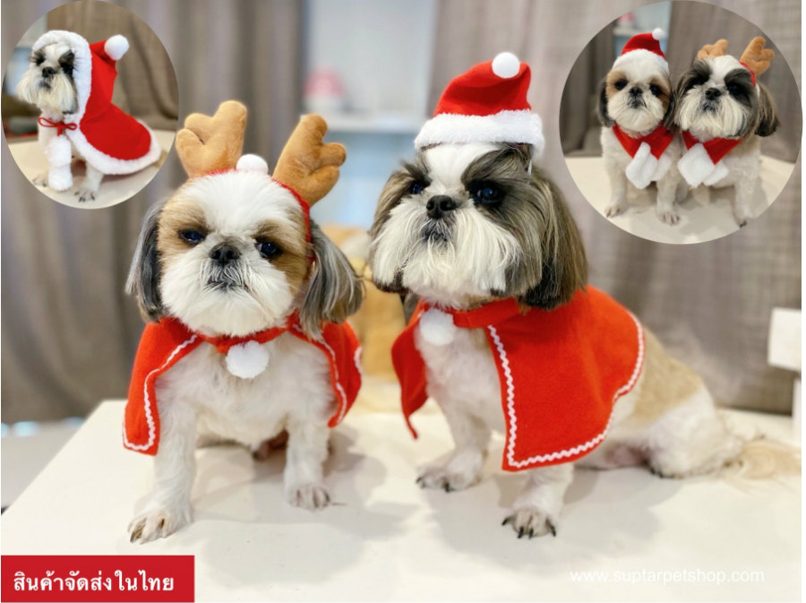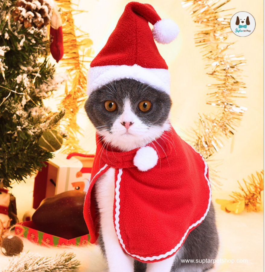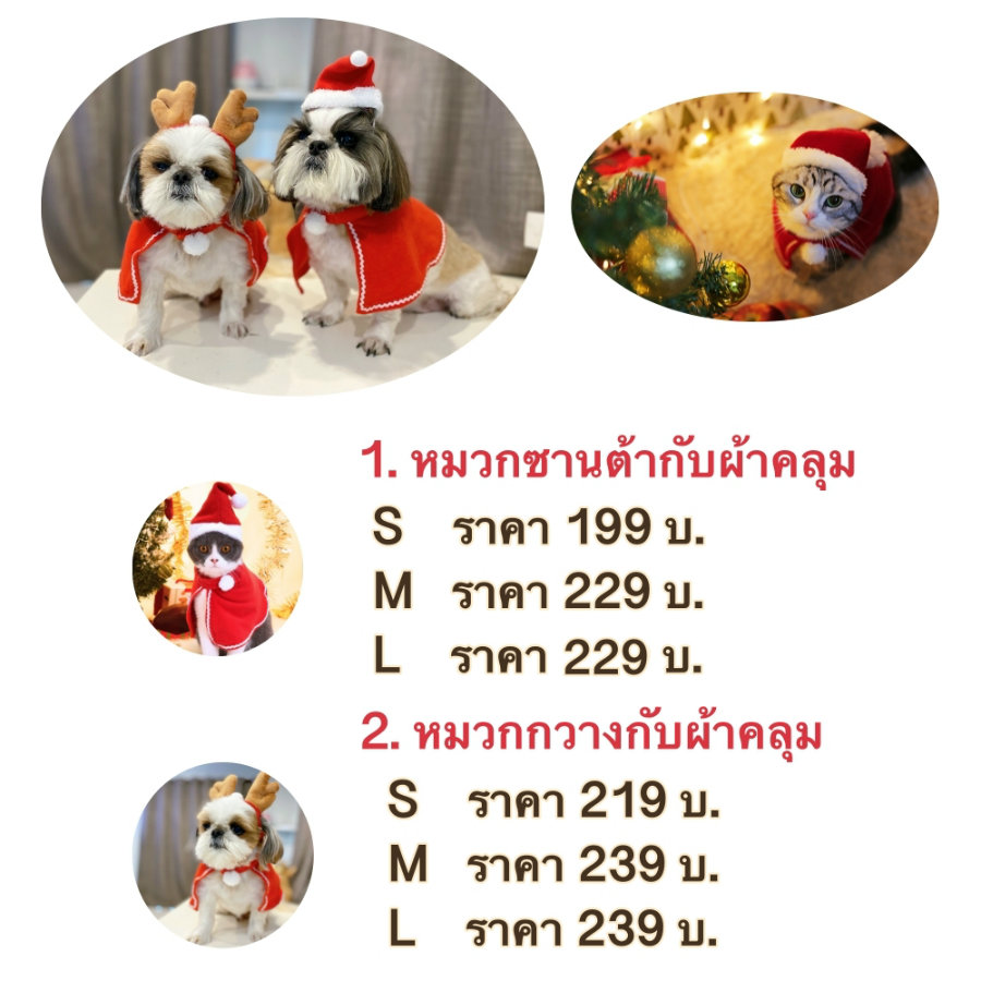 ชุดคริสต์มาสสัตว์เลี้ยง ชุดแฟนซีหมา แมว ผ้าคลุมกันหนาว ผ้าคลุมซานต้า หมวกซานต้า หมวกกวางซานต้า ของตกแต่งวันคริสต์มาสน้องหมาแมว |