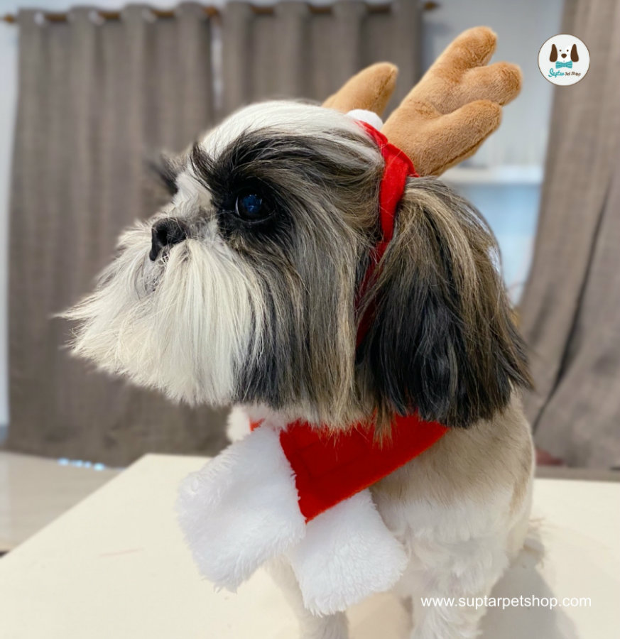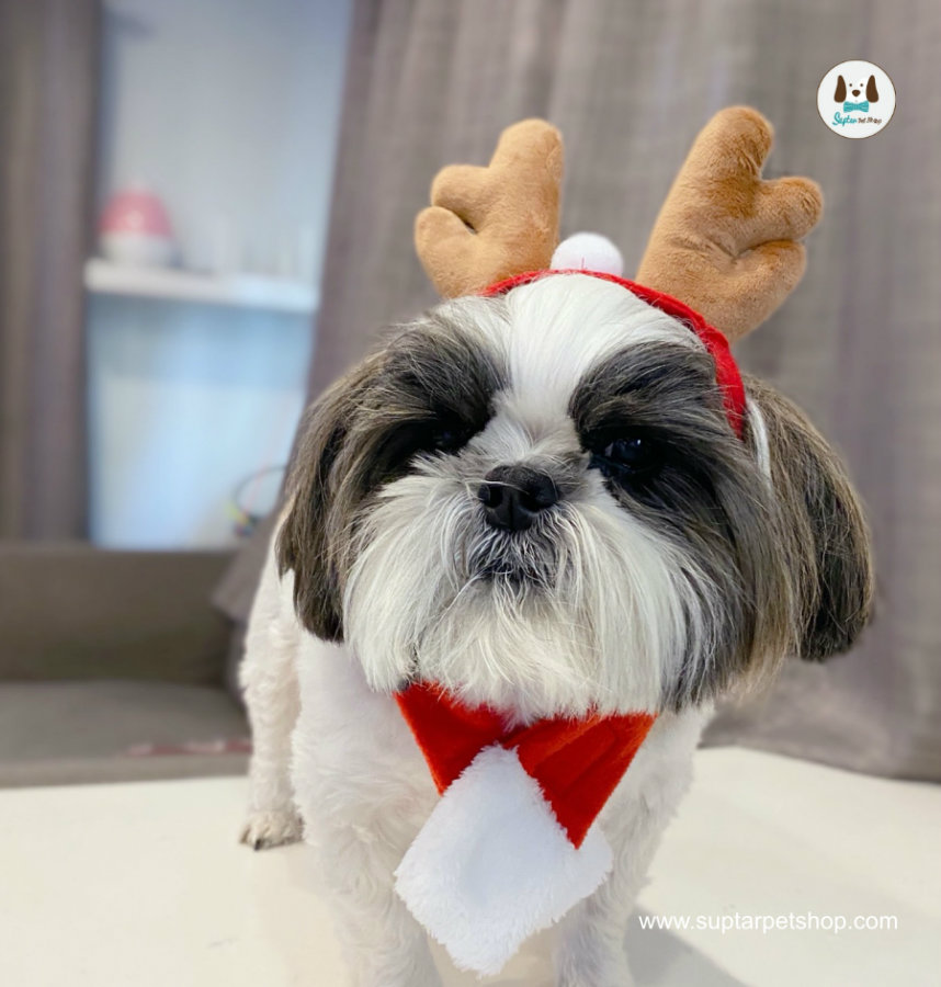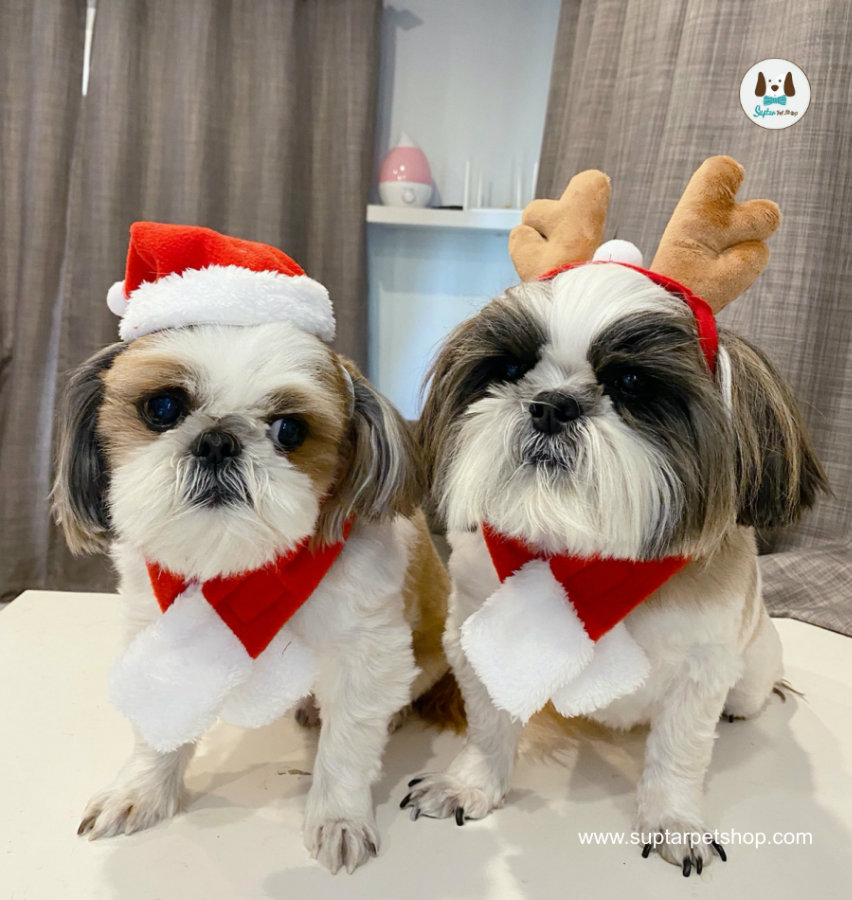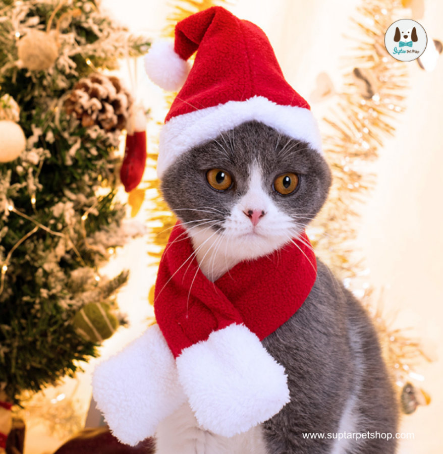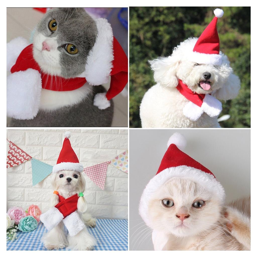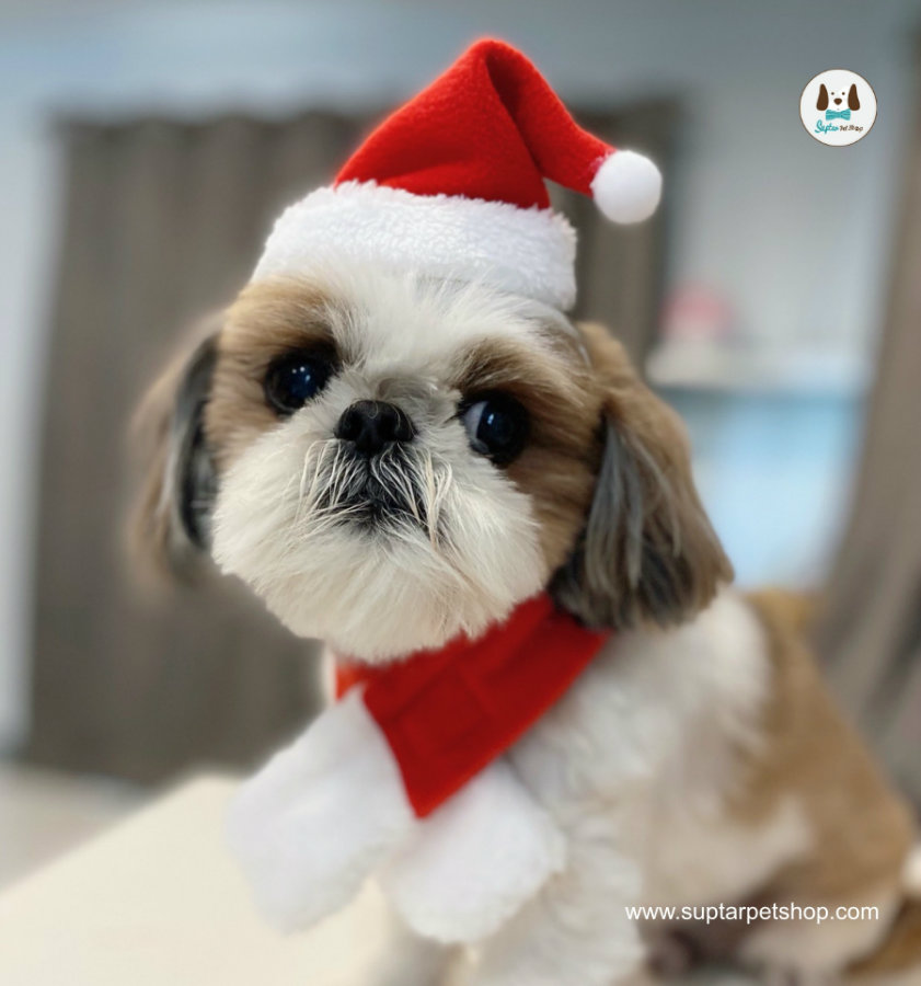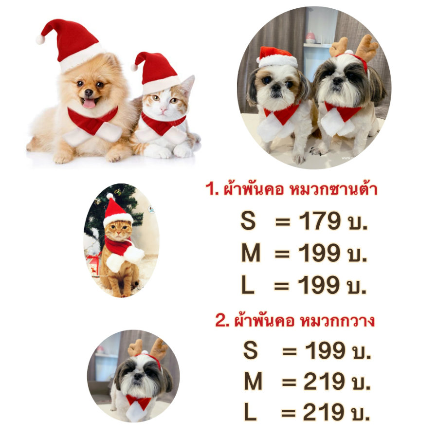 Santaหมา Santa Claus หมา ผ้าพันคอซานต้า หมวกซานต้า ห |