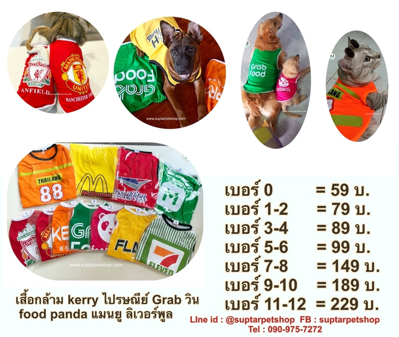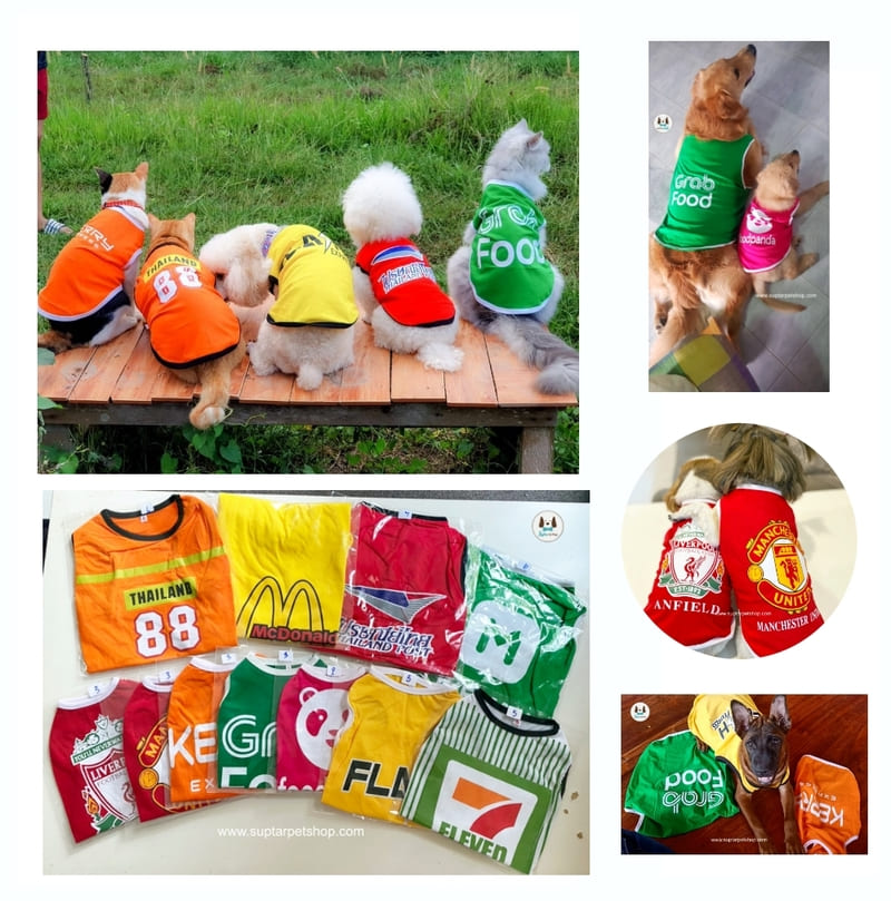 เสื้อผ้าหมาแมว ลายยอดฮิต 2025 | แมนยู ลิเวอร์พูล FLASH Coke วิน KFC ขนส่งครบ |