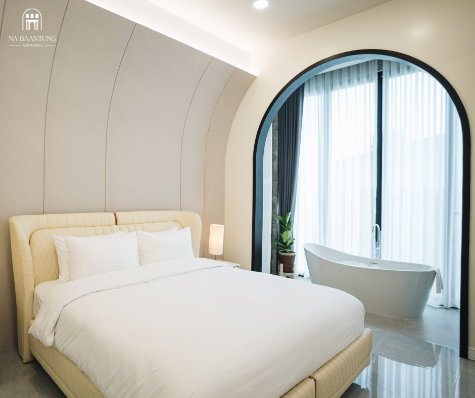ณ บ้านทุ่ง อัมพวา โรงแรม ที่พักริมน้ำอัมพวา โทนสีขาว ค่าเฟ่ สวย ที่พักงาม สุดๆ