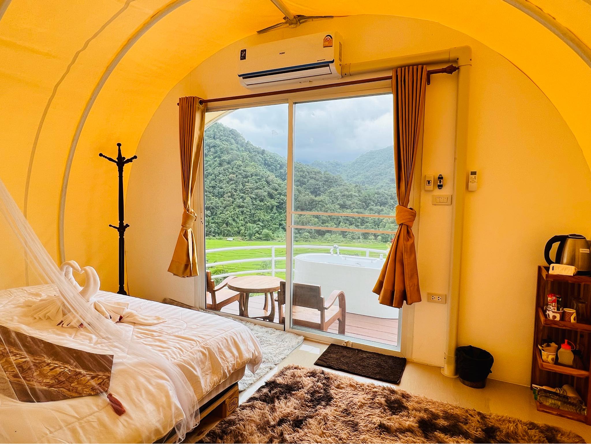 เต้นท์โดมใหญ่ จากปกติ 3,500ลดเหลือ 2,000 บาทพักได้ 2 ท่าน  ( มีทั้งหมด  6  หลัง ) อาหารเช้าฟรี เสริฟหน้าห้อง breakfast , ข้าวต้มหม้อดิน และ กาแฟดริป