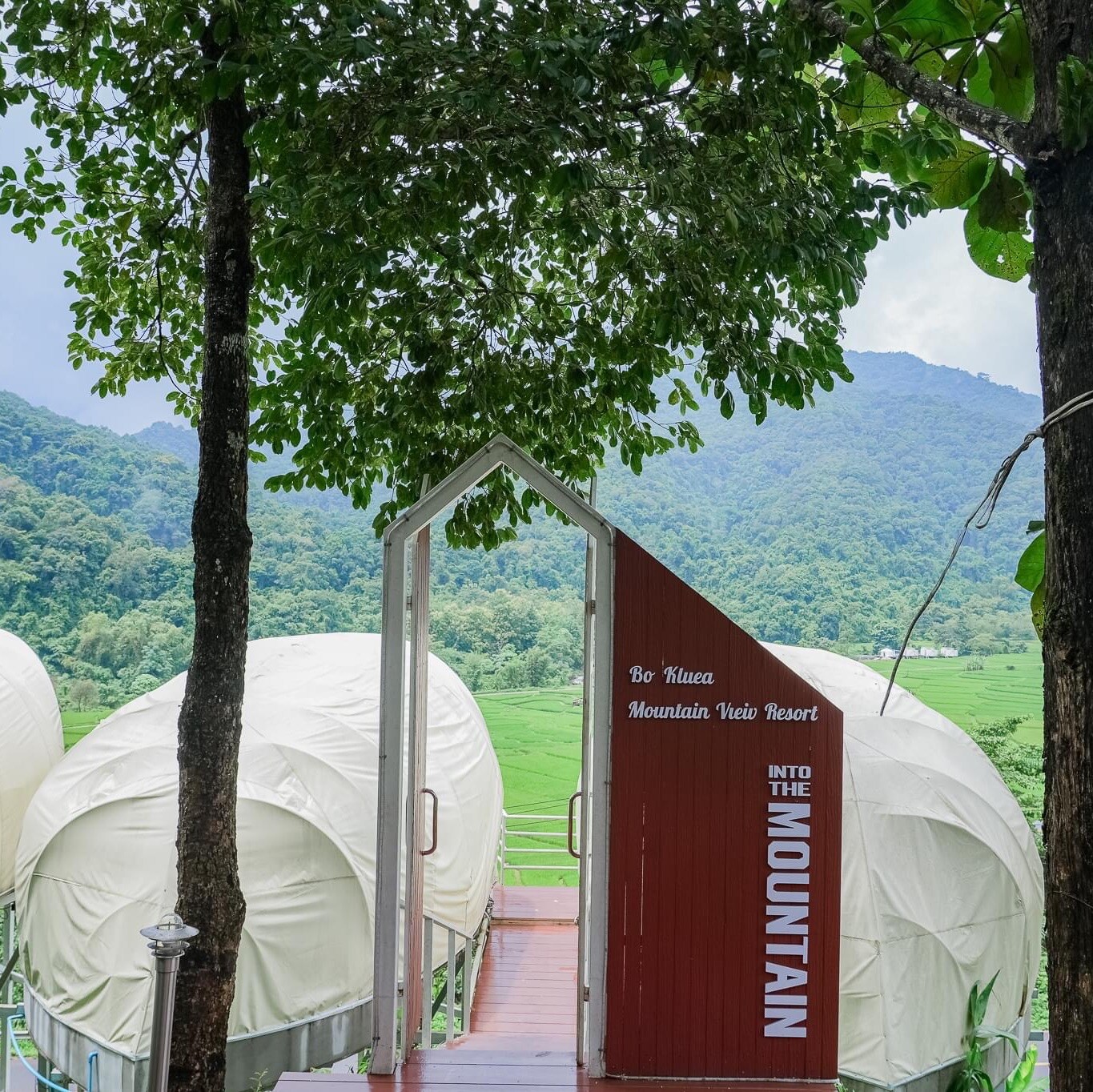 บ่อเกลือ เม้าท์เท่นวิว (Bo Kluea Mountain View) ที่พักอยู่ใกล้บ่อเกลือโบราณ ก่อนถึงบ้านสะปันนิดเดียว ยินดีต้อนรับ น้องหมาน้องแมว สามารถเข้าพักได้ ที่พักสวยๆแบบนี้ ดีมากๆเข้าได้ทุกแบบ เป็นที่พักสไตล์แคมป์ มีเต็นท์โดม 2 แบบ โดมทรงกลม และโดมทรงหนอน ติดแอร์ทุกห้อง ห้องน้ำในตัว มีอ่างน้ำให้แช่แบบรับธรรมชาติเต็มๆ มองเห็นวิวทุ่งนาและภูเขา 180 องศา ต้อนรับด้วย Welcome drink after noon tea set ทำให้รู้สึกสดชื่นผ่อนคลาย นอกเหนือจากการได้พักผ่อนกับบรรยากาศสวยๆ  ช่วง Grain season ภูเขา ทุ่งนาเขียวขจี ถือเป็นช่วงที่สวยที่สุดของจังหวัดน่าน กับที่พักบนภูเขาเห็นทุ่งนาขันบันได ที่สวยที่สุดของบ่อเกลือ กับที่จอดรถสะดวกถึงห้องพัก ที่พักอยู่ใกล้บ่อเกลือโบราณ ก่อนถึงบ้านสะปันนิดเดียว ทางรีสอร์ตมีรถ ATV บริการ ขับรถชมวิถีชีวิตบรรยากาศ ทุ่งนา ลำธาร บ่อเกลือโบราณ  พร้อมถ่ายรูปสวยๆให้คุณลูกค้าด้วย