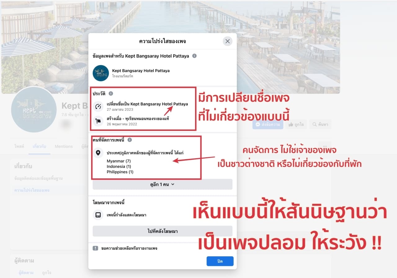 วิธีดูเพจปลอม เว็บที่พักปลอม บน Facebook หลอกโอนเงิน ให้ระวัง จุดสังเกต Fanpage ปลอมง่ายนิดเดียว - Pet Friendly 2025 | โรงแรมสัตว์เลี้ยงเข้าได้ ใกล้ฉัน ที่พักหมาแมวพักได้ทั่วไทย