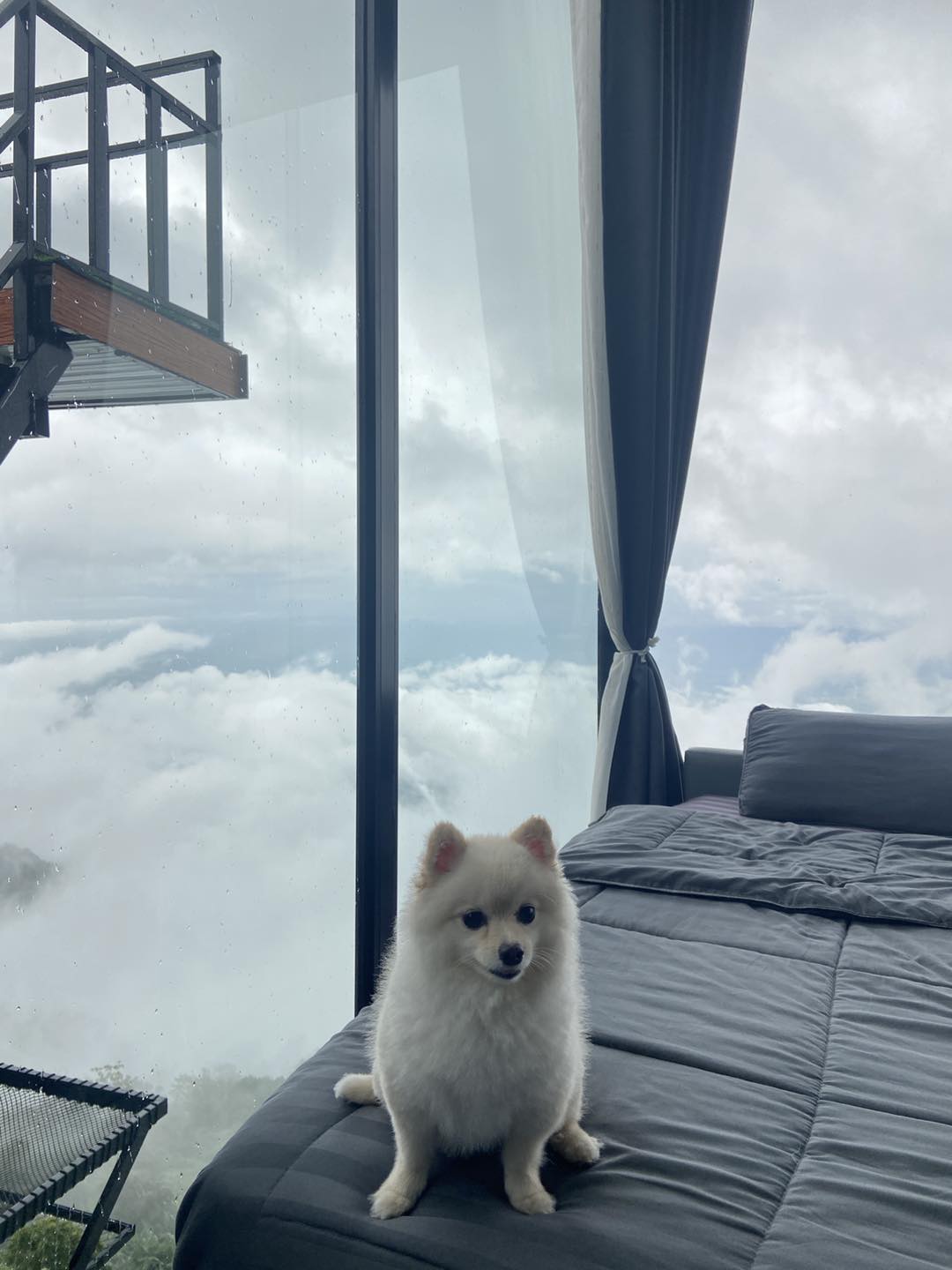 เราเลือกพักกันที่ ไร่ผาชมวิว ห้องกระจกใส B2 ต้นไม้ สายหมอกรายล้อม มองเห็นวิวหมอก รอบด้าน นอนชิดติดหมอกกันเลย วิวของที่พักห้องนี้ไม่ติด ไม่มีอะไรบังสายตา อยู่ติดริมเขาจริงๆ ใครอยากนอนพักผ่อน นอนดูหมอก แนะนำห้องนี้นะคะ ห้องนี้สามารถเข้าพักได้ 4 ท่าน มีเตียงใหญ่ๆ 2 เตียง และด้านนอก มีโต๊ะนั่งทานหมูกระทะ พร้อมตาข่ายนอนชมวิว ใครมีน้องหมา น้องแมว แนะนำที่นี้เลยค่ะ แล้วที่พักยังมีน้องปอมสีขาวเหมือนฟีฟ่าด้วย ชื่อไข่ขาว